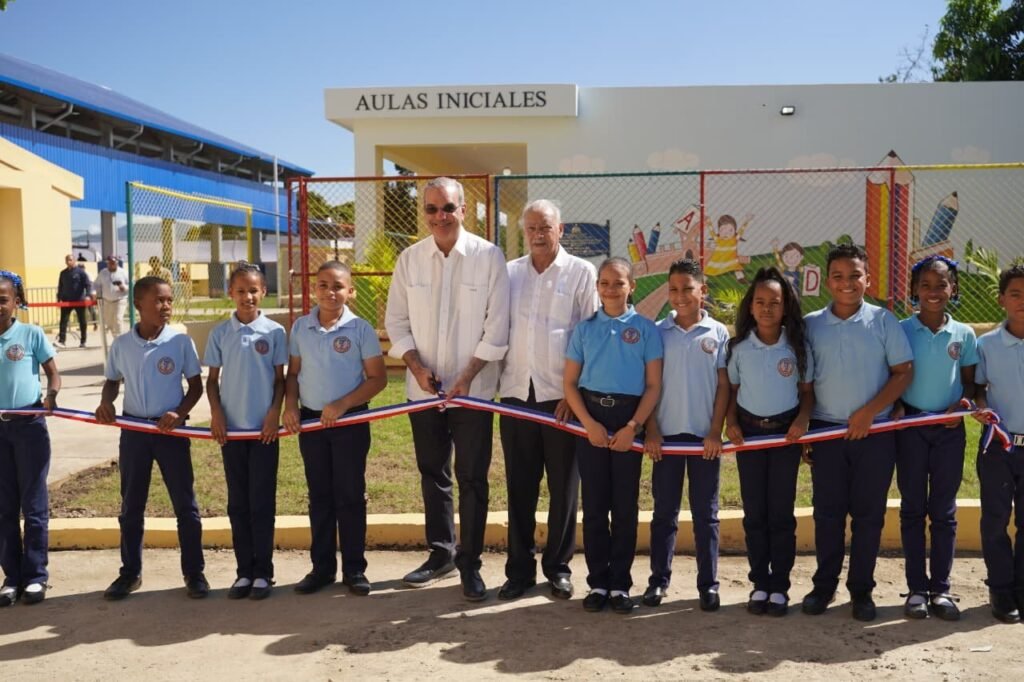 El presidente de la República Dominicana, Luis Abinader Corona, inauguró hoy domingo, el techado de la cancha y las aulas del Nivel Inicial de la Escuela Francisco Javier Ureña Canela, en la provincia Dajabón, una obra que fortalece la infraestructura educativa y contribuye a mejorar las condiciones de enseñanza y aprendizaje en esta demarcación.