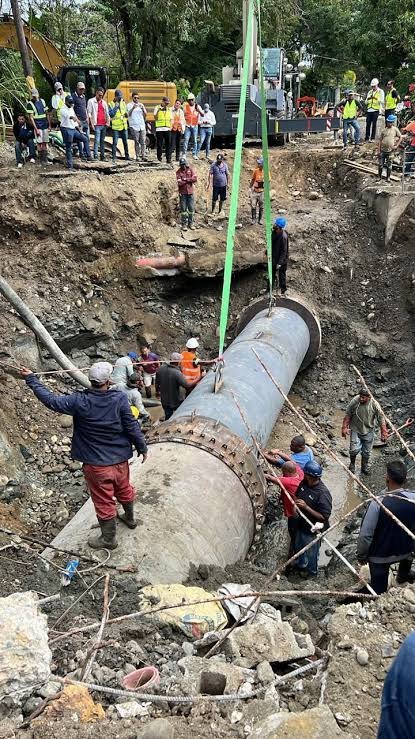 La tubería del Acueducto Cibao Central, ya reparada, permitió el restablecimiento del suministro de agua en Santiago y Espaillat. (FUENTE EXTERNA