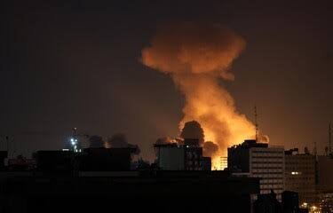Videos en redes sociales mostraron fuertes explosiones y enormes columnas de humo elevándose en la noche.